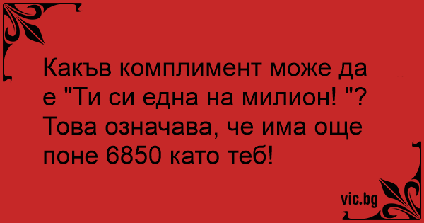 • Вицове от Facebook от нашата страница https://www.facebook.com/www.vic.bg
