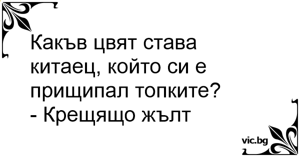 Какъв цвят става китаец, който си е прищипал топките?