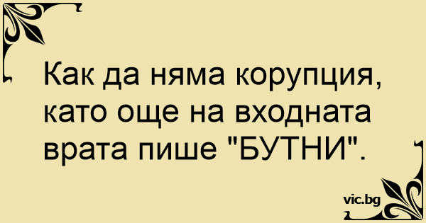 Как да няма корупция, като още на входната врата пише "БУТНИ".