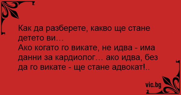Ако когато го викате, не идва - има данни за кардиолог… ако идва, без да го викате - ще стане адвокат!..