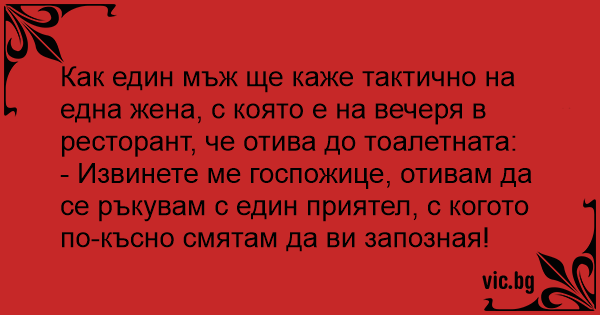 A vendéglőben ül a pár az első randijukon, amikor a pasinak pisilnie kell. Így szól a hölgyhöz: - Elnézést, magára hagyom pár percre, mert szeretnék kezet fogni azzal a barátommal, akit még ma este...