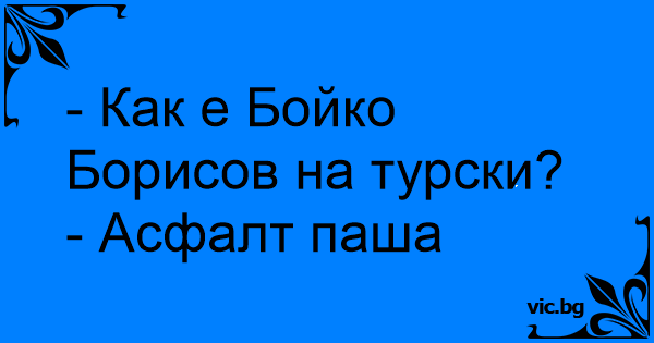 - Как е Бойко Борисов на турски?<br />- Асфалт паша