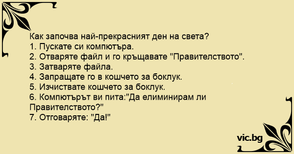 Вицове от Facebook от нашата страница https://www.facebook.com/www.vic.bg