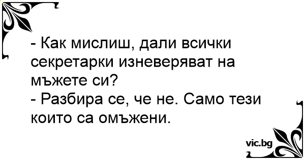 - Как мислиш, дали всички секретарки изневеряват на мъжете си?