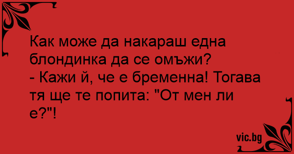 - Кажи й, че е бременна! Тогава тя ще те попита: "От мен ли е?"!