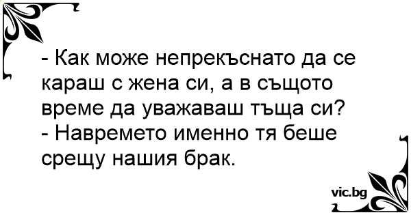 - Как може непрекъснато да се караш с жена си, а в същото време да уважаваш тъща си?