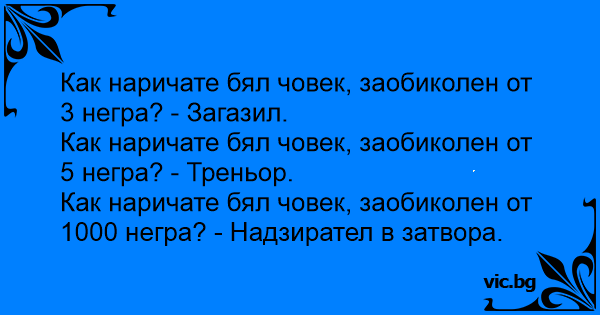 Как наричате бял човек, заобиколен от 1000 негра? - Надзирател в затвора.