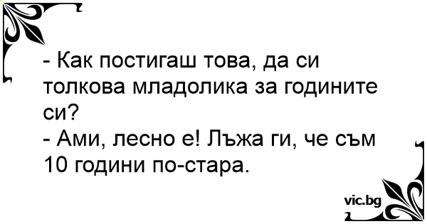 - Ами, лесно е! Лъжа ги, че съм 10 години по-стара.