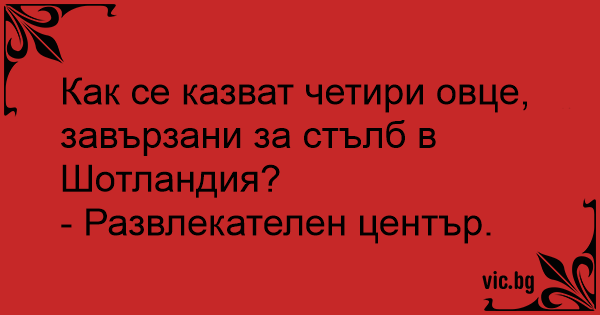 Как се казват четири овце, завързани за стълб в Шотландия?