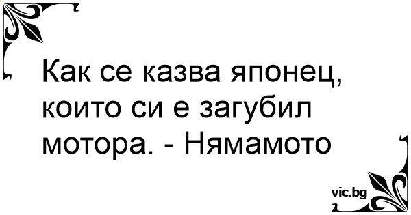 Как се казва японец, които си е загубил мотора. - Нямамото