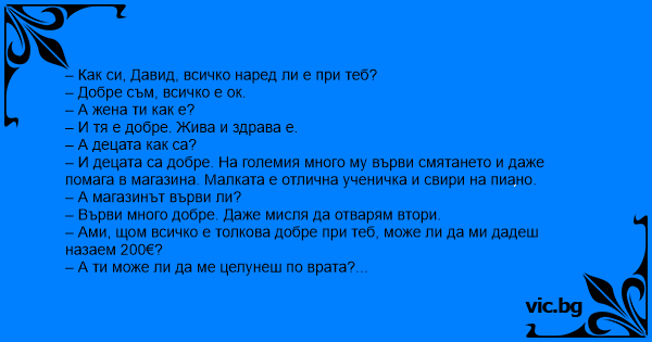• Вицове от Facebook от нашата страница https://www.facebook.com/www.vic.bg