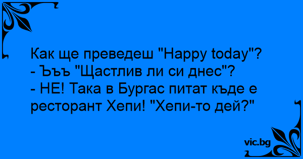 - НЕ! Така в Бургас питат къде е ресторант Хепи! "Хепи-то дей?"