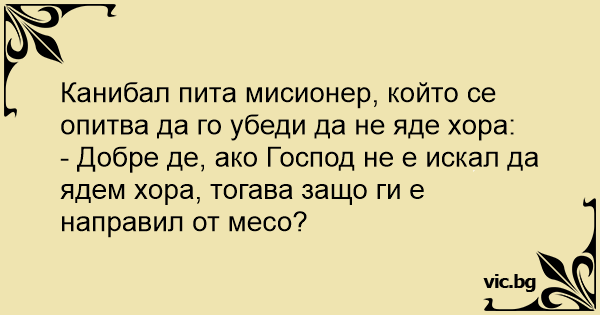 - Добре де, ако Господ не е искал да ядем хора, тогава защо ги е направил от месо?