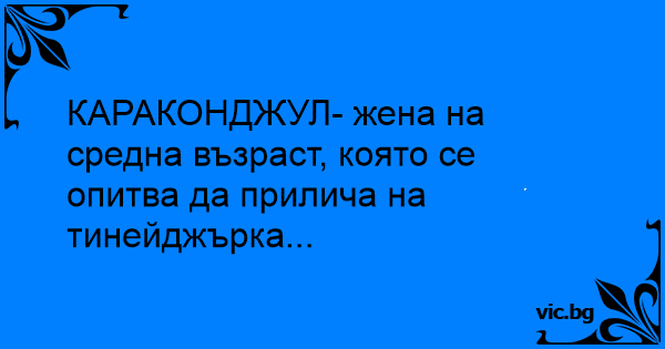 КАРАКОНДЖУЛ- жена на средна възраст, която се опитва да прилича на тинейджърка...