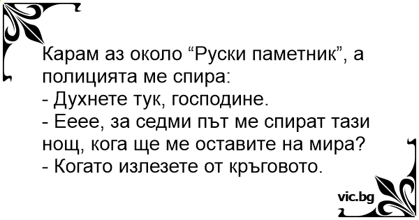 - Ееее, за седми път ме спират тази нощ, кога ще ме оставите на мира?