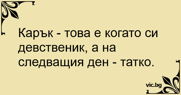 Карък - това е когато си девственик, а на следващия ден - татко.
