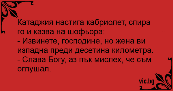 Катаджия настига кабриолет, спира го и казва на шофьора: