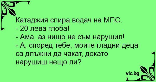 • Вицове от Facebook от нашата страница https://www.facebook.com/www.vic.bg