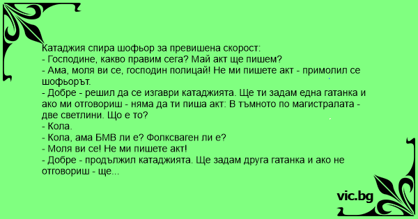 - Добре - примирил се шофьорът. Пишете ми акта! Ама, като сте такъв любител на гатанките, нека и аз да ви задам една.