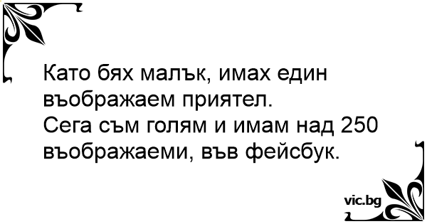 Сега съм голям и имам над 250 въображаеми, във фейсбук.