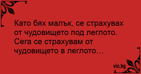 Father talks to his 5-year-old son: “No, Petie, you don’t have to worry. There is no monster sleeping under your bed. It sleeps every day in the bed next to me.”