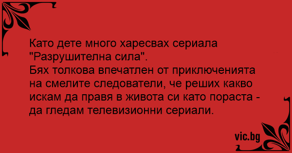 Като дете много харесвах сериала "Разрушителна сила".