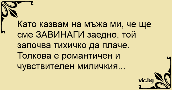 Като казвам на мъжа ми, че ще сме ЗАВИНАГИ заедно, той започва тихичко да плаче.