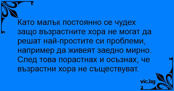 След това порастнах и осъзнах, че възрастни хора не съществуват.