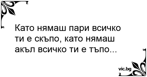 Като нямаш пари всичко ти е скъпо, като нямаш акъл всичко ти е тъпо...