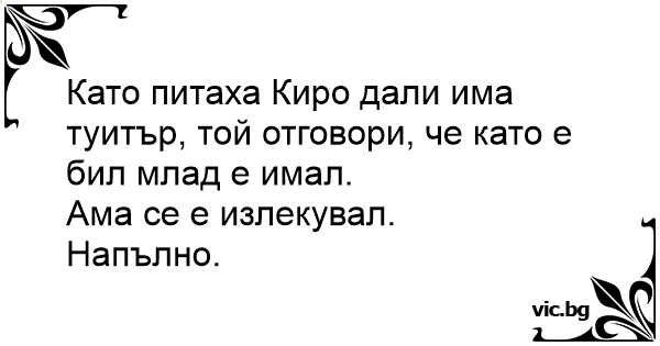 Като питаха Киро дали има туитър, той отговори, че като е бил млад е имал.