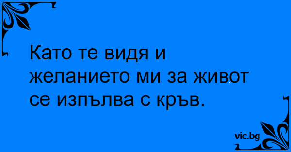 Като те видя и желанието ми за живот се изпълва с кръв.