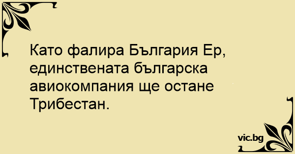 Като фалира България Ер, единствената българска авиокомпания ще остане Трибестан.