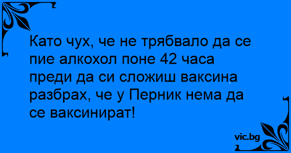 Като чух, че не трябвало да се пие алкохол поне 42 часа преди да си сложиш ваксина разбрах, че у Перник нема да се ваксинират!
