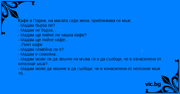 - Мадам може ли да звънне на мъжа си и да съобщи, че е изнасилена от непознат мъж?