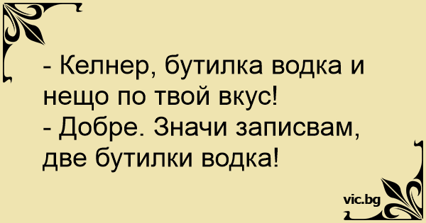 - Келнер, бутилка водка и нещо по твой вкус!