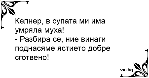 Келнер, в супата ми има умряла муха!