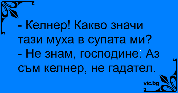 Келнер, в супата ми има муха, бихте ли ми казали какво означава това?!