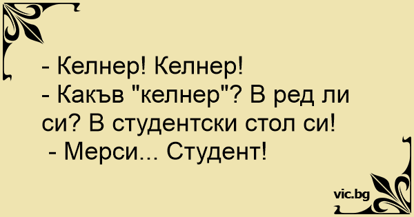 - Какъв "келнер"? В ред ли си? В студентски стол си!