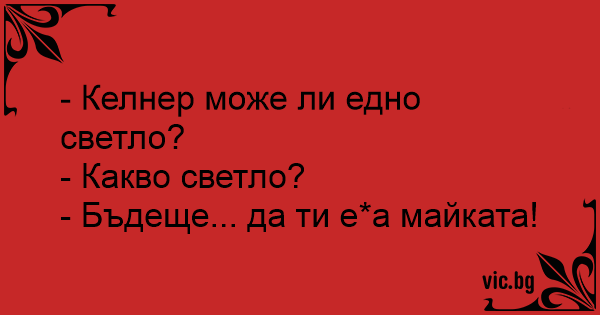 - Келнер може ли едно светло?