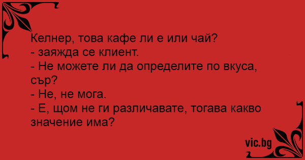 Келнер, това кафе ли е или чай?