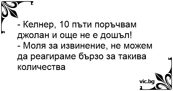 - Келнер, 10 пъти поръчвам джолан и още не е дошъл!