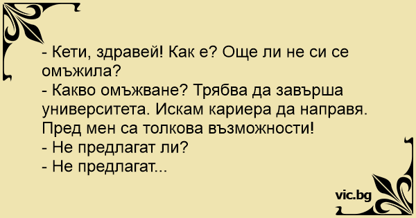 - Кети, здравей! Как е? Още ли не си се омъжила?