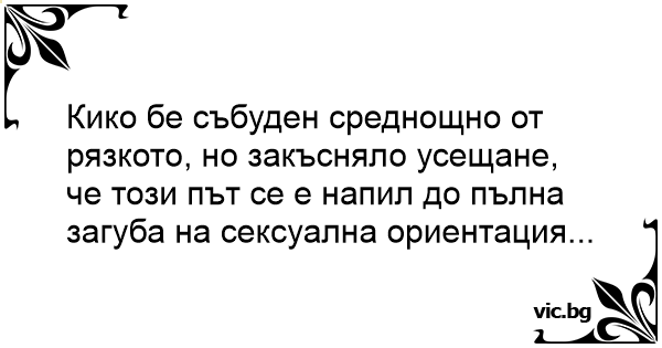 Кико бе събуден среднощно от рязкото, но закъсняло усещане, че този път се е напил до пълна загуба на сексуална ориентация...