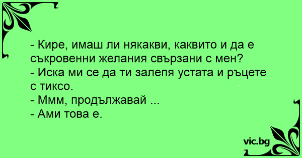 - Кире, имаш ли някакви, каквито и да е съкровенни желания свързани с мен?