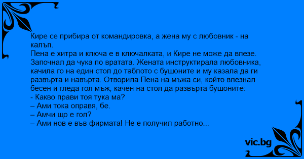• Вицове от Facebook от нашата страница https://www.facebook.com/www.vic.bg