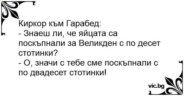 - О, значи с тебе сме поскъпнали с по двадесет стотинки!