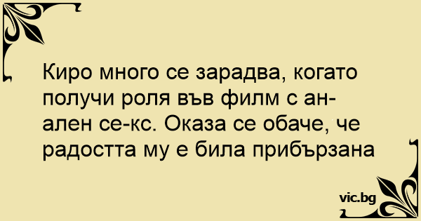 Киро много се зарадва, когато получи роля във филм с aнaлeн cekc. Оказа се обаче, че радостта му е била прибързана