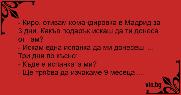 Wife: I am going to Madrid, what gift do you want?