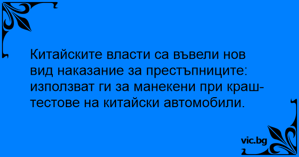 Китайските власти са въвели нов вид наказание за престъпниците: използват ги за манекени при краш-тестове на китайски автомобили.