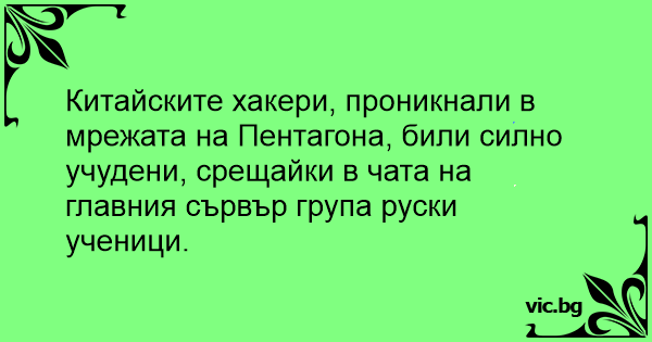Китайските хакери, проникнали в мрежата на Пентагона, били силно учудени, срещайки в чата на главния сървър група руски ученици.